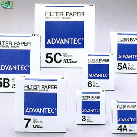- Giấy lọc định lượng Advantec số .5A: lọc nhanh nhất, bộ lọc hạt thô: lọc kết tủa thu được, các chất điện giải và các bộ lọc màu sắc hơn so với các mẫu trước đó, lấy mẫu giám sát ô nhiễm môi trường, màu thực phẩm, dầu ăn, xi-rô.